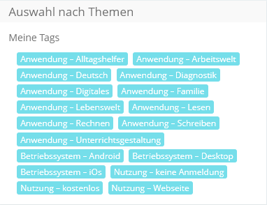 Um Ihnen den Zugriff zu erleichtern, können die enthaltenen Inhalte gefiltert werden. Wählen Sie einfach einen oder mehrere passende Tags aus. Berücksichtigt wird hier u. a. die vorhandene technische Ausstattung:
