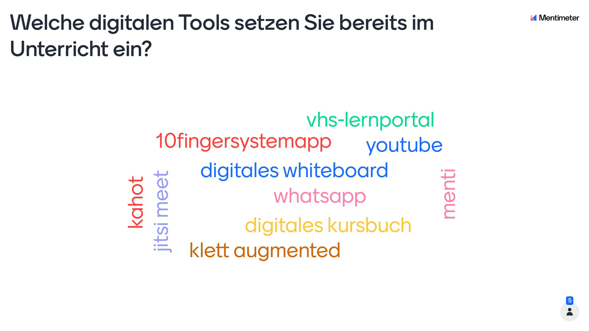 - Anreicherung des Unterrichts: Ein digitales Whiteboard wie Collaboard kann vielfältig genutzt werden. Zum Beispiel können Sie verschiedene Tafelbilder erstellen oder Ergebnisse festhalten. Auch die Lernenden können bei der Gestaltung unterstützen oder Ergebnisse aus Gruppenarbeiten dokumentieren.Neben Whiteboards können auch digitale Mindmaps wie Mind Map AR eingesetzt werden, um Ergebnisse und Gedanken festzuhalten.Quizzes, die beispielsweise mit Kahoot! oder Mentimeter erstellt werden können, können genutzt werden, um Vorwissen zu aktivieren oder Lernerfolge zu überprüfen.